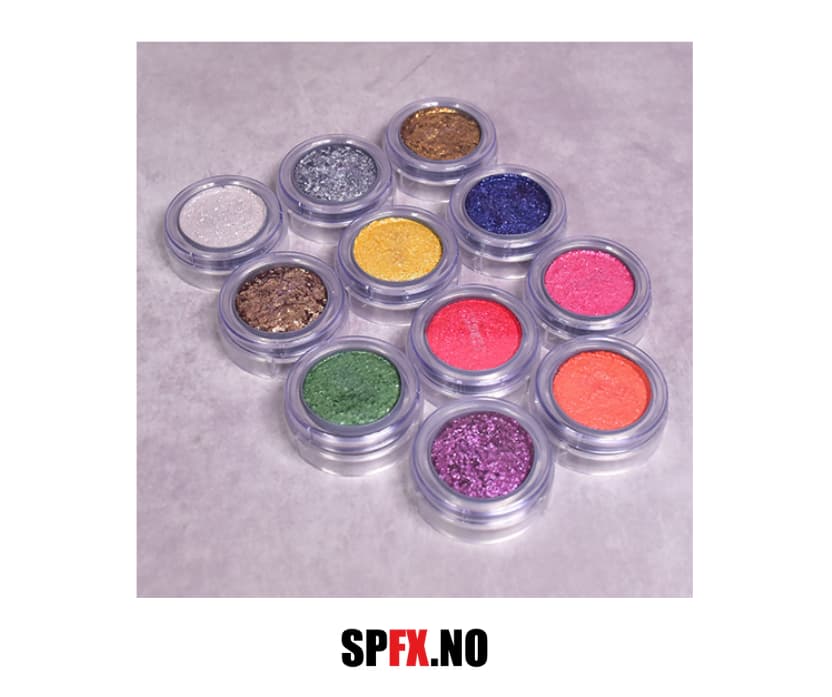 Plastfri glittersminke produsert av Grimas i Nederland. Egnet til festivaler, fest og skjønnhetssminke. Utmerket til detaljer og effekter i ansiktsmaling. Føles mykt mot huden og man behøver ikke hudlim. Fås i flere ulike farger.