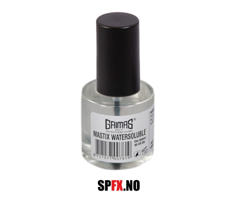 Grimas vannbasert Mastixer en hudlim som fjernes med vann og brukes for å lime Ullcrepe skjegg, bart og øyebryn hos barn til ansiktsmaling eller i en undervisningssituasjon. Vannbasert Mastix selges i 10 ml med en applikasjonskost.